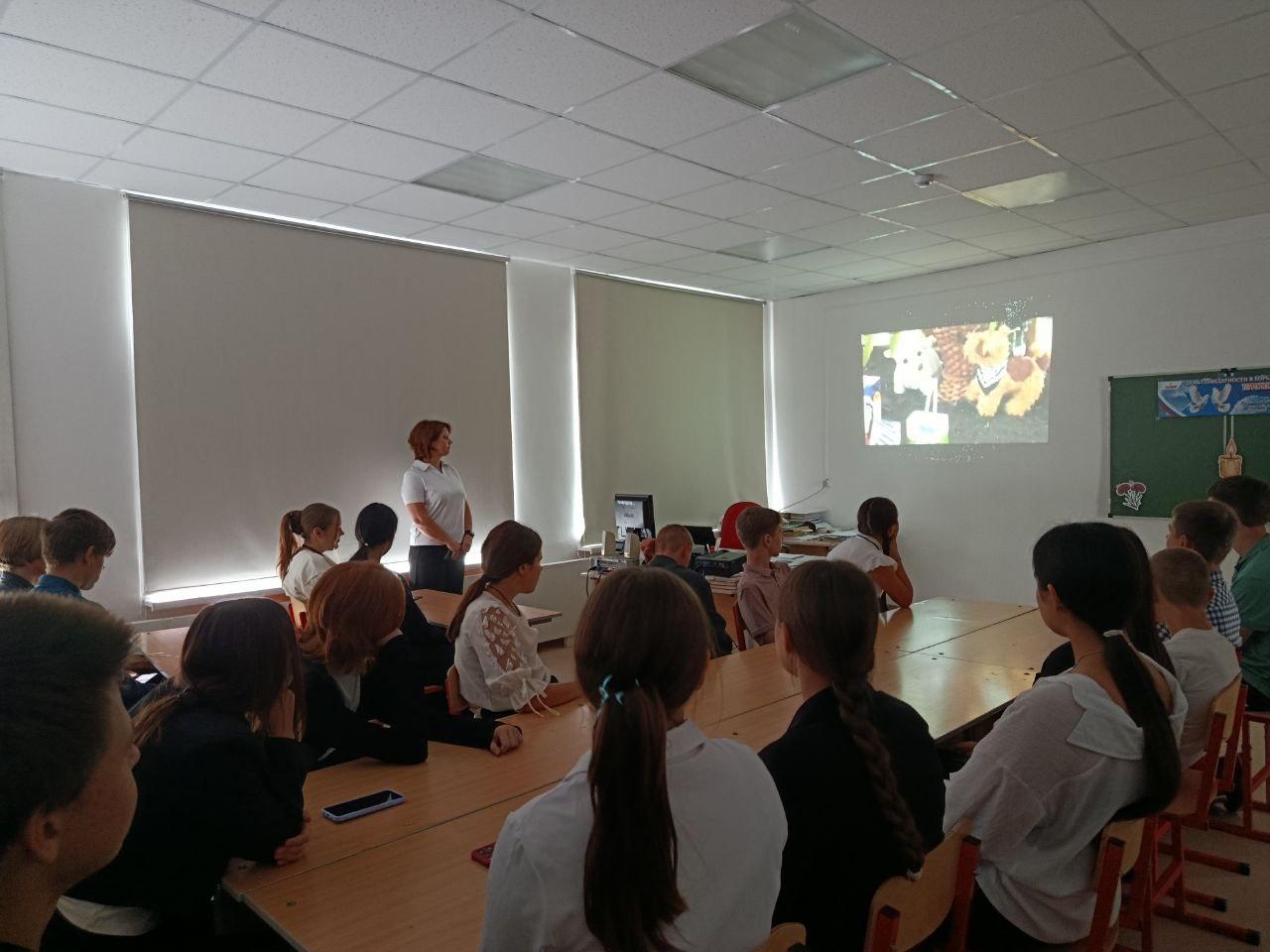 Советник директора по воспитанию показала документальный фильм «Беслан – наша трагедия», после которого состоялось его обсуждение. Ребята смогли выразить свои эмоции и задать вопросы о том, как важно противостоять идеологии террора и экстремизма.
